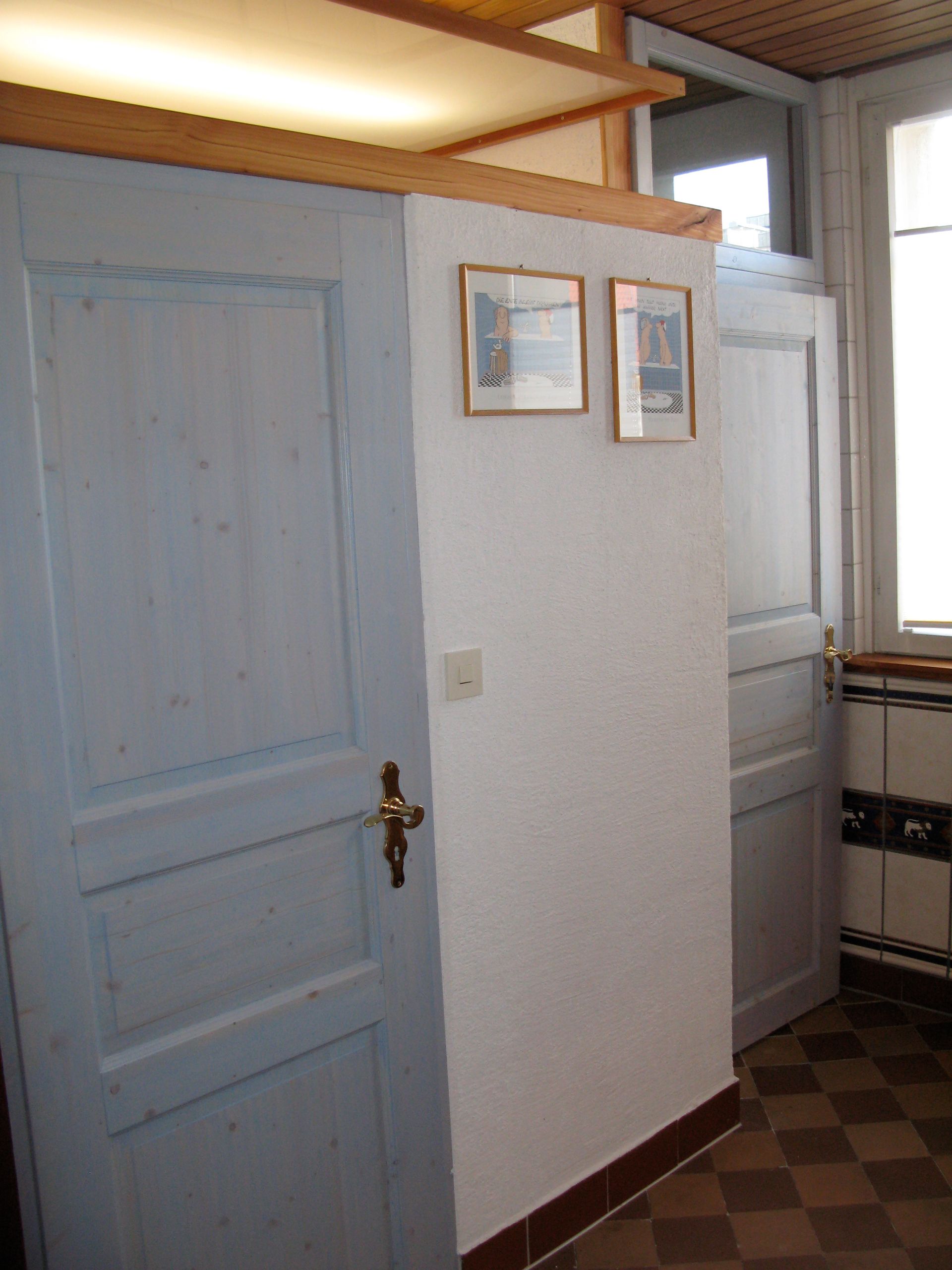 Im Aufenthaltsbereich befindet sich der Zugang zu Bad, WC und Balkon.