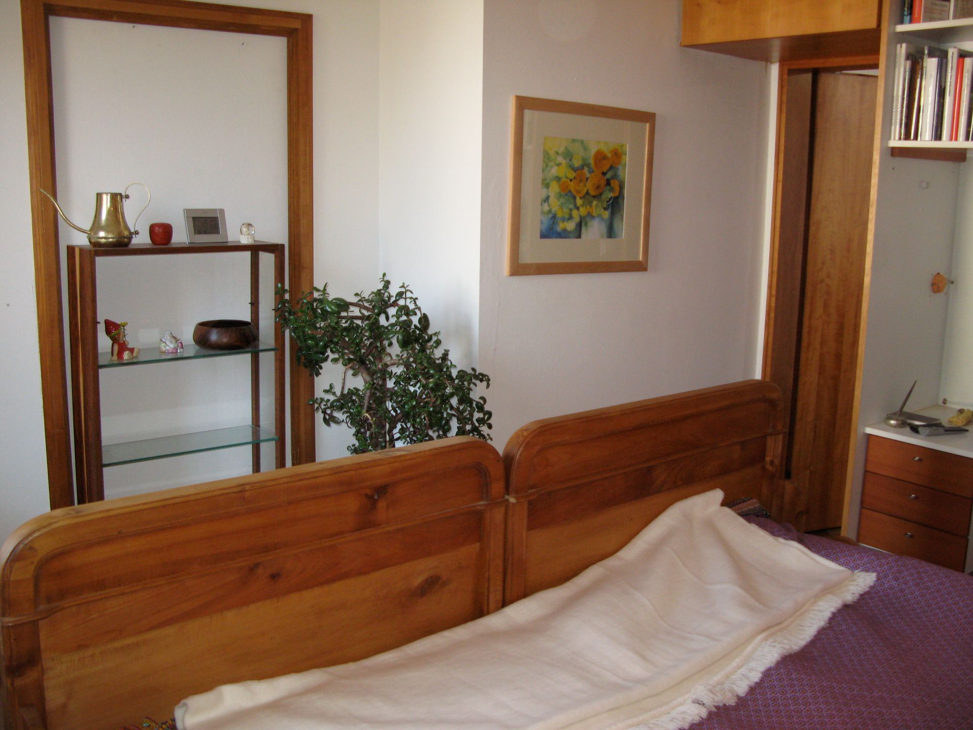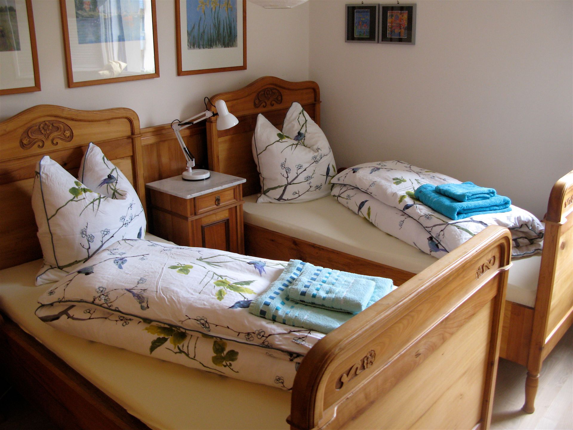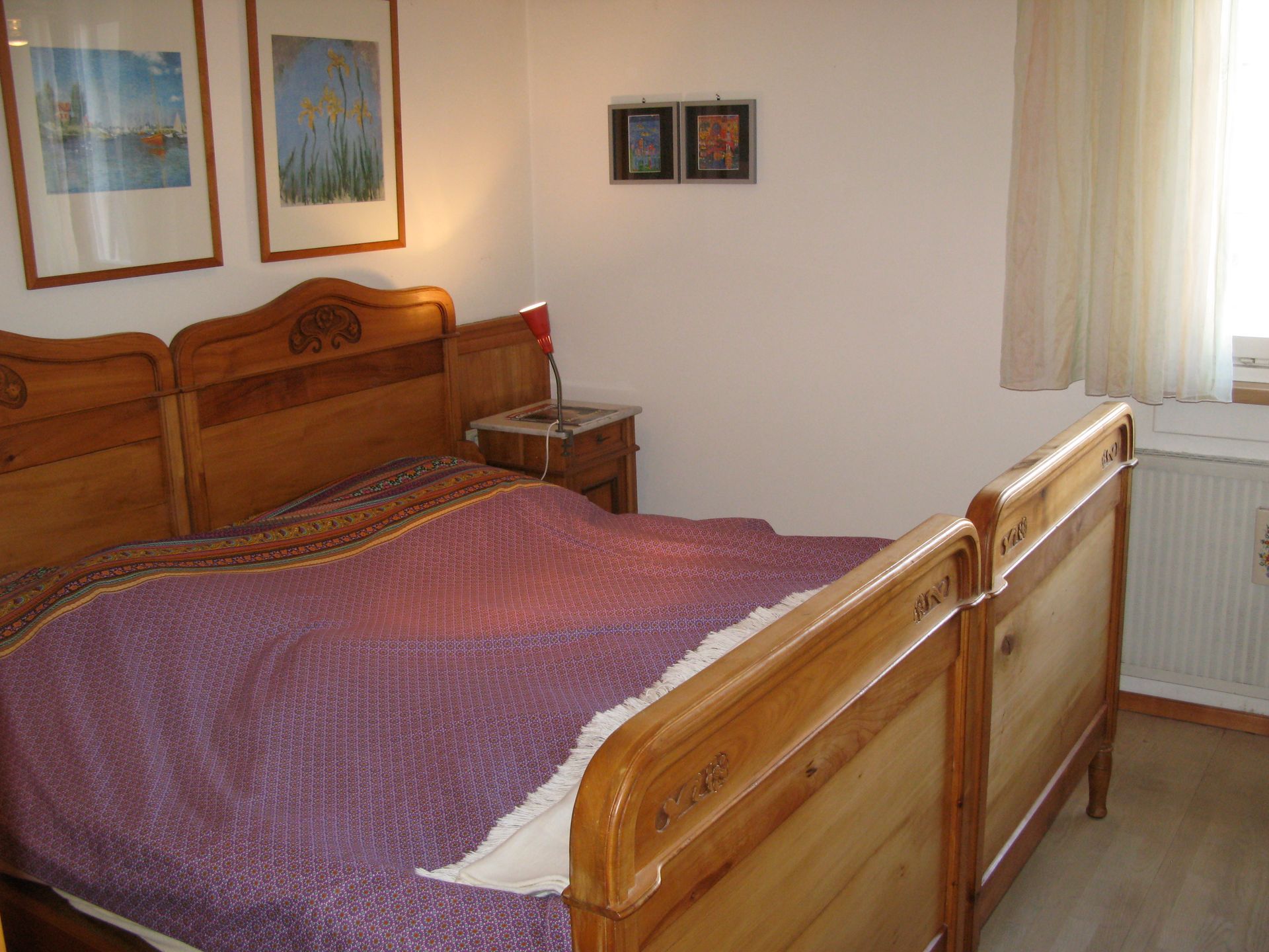 Das Doppelbett im Schlafzimmer kann auch als 2 Einzelbetten aufgestellt werden.